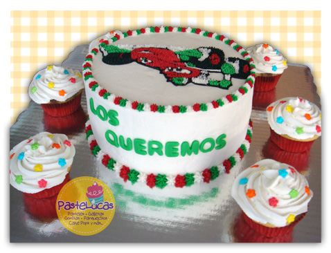 Este es un pastel muy especial porque tiene 3 motivos, la familia festejada cambia de residencia proximamente y el cumple del pequeño esta cerca, pero ya no será con toda la familia, así que decidieron festejar el cumple y la despedida al mismo tiempo, y por qué no, unos paquecitos especiales para la pequeña de la casa!! Les deseamos mucho éxito en esta nueva etapa de sus vidas!!