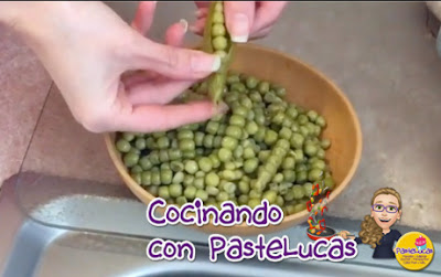 2. Ya que puedas abrir la olla vacía las vainas en el fregadero para que empiecen a enfriar y puedas sacar los chícharos.